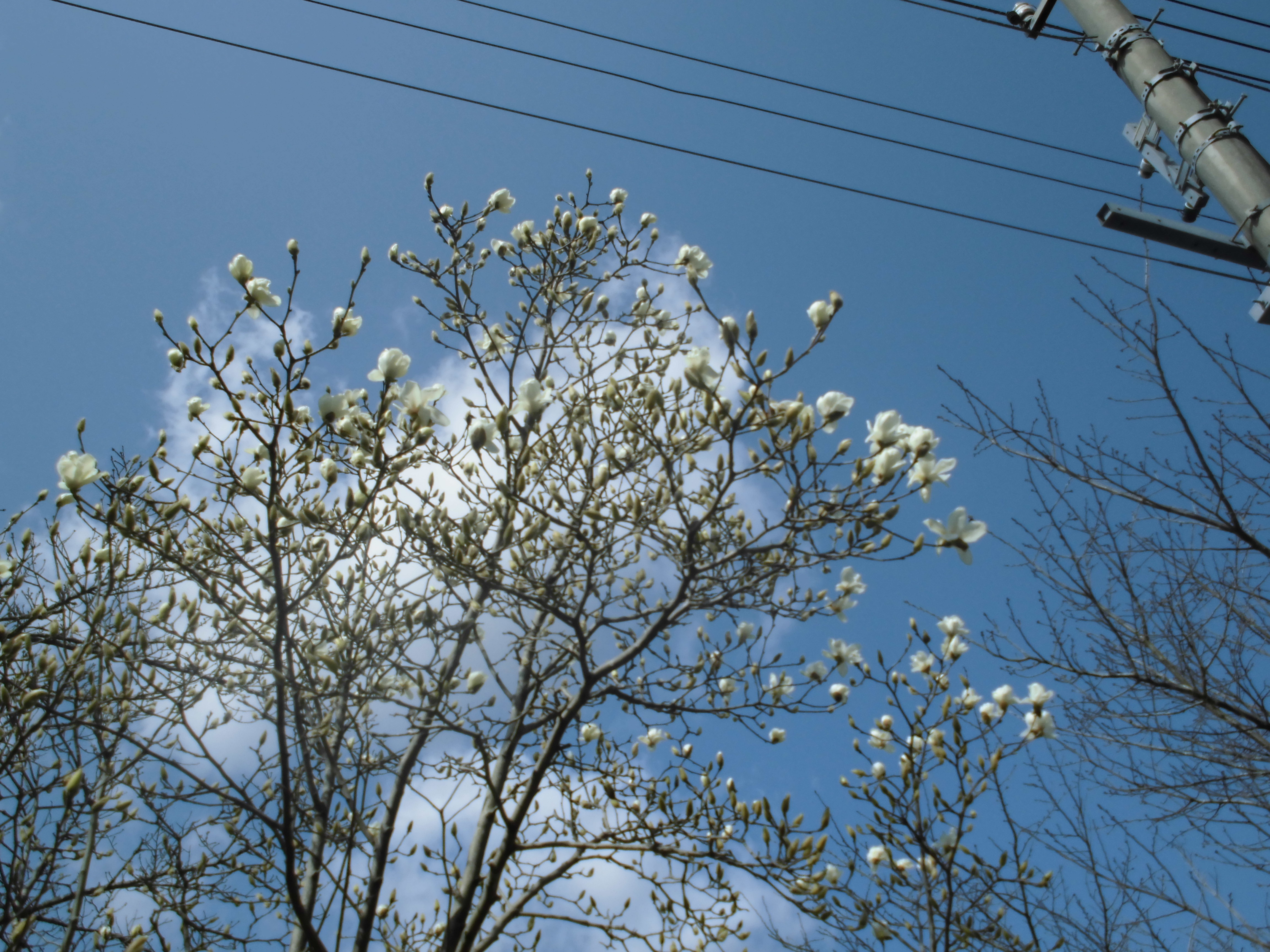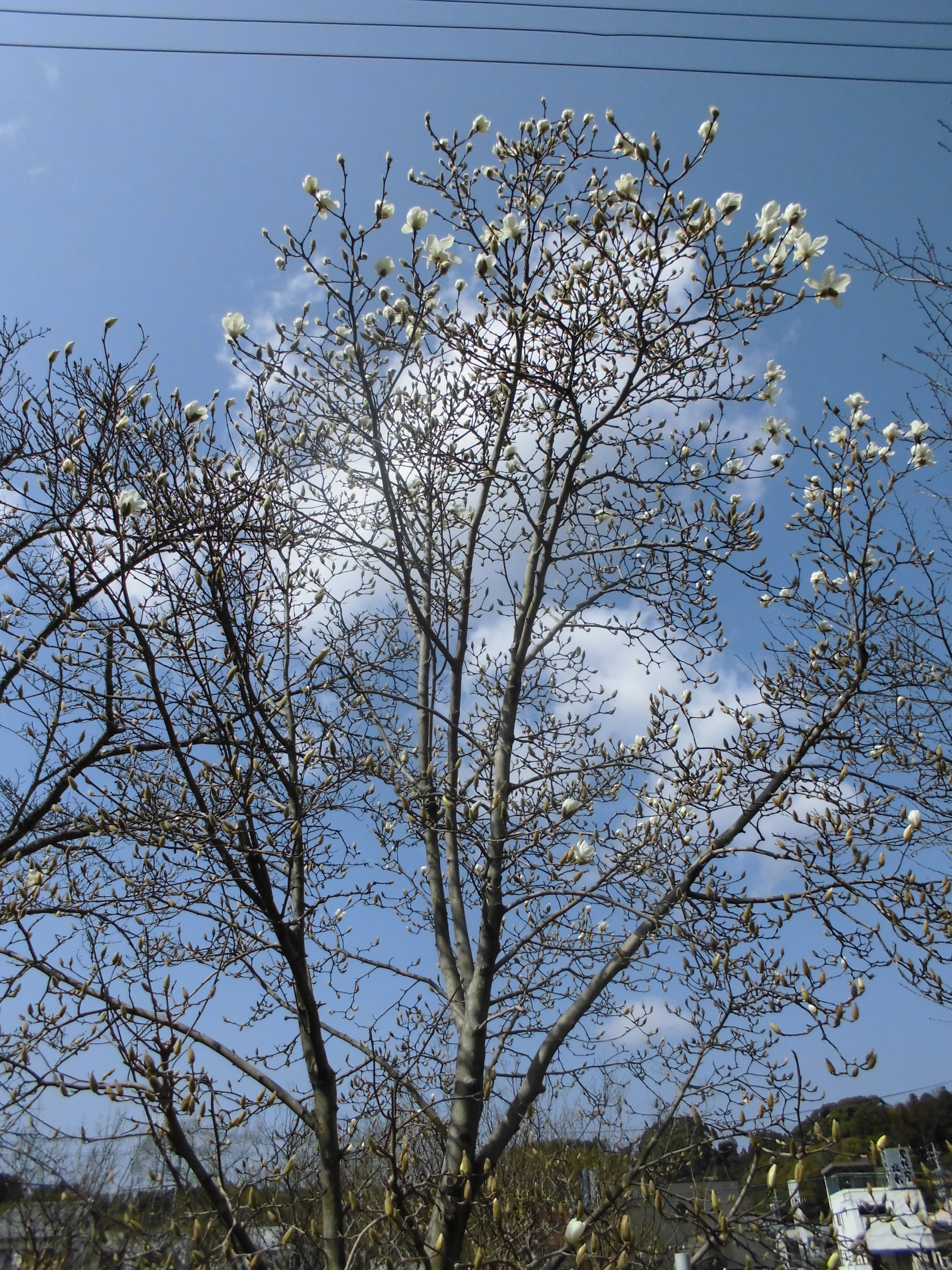 毎朝通る二俣川沿いの白木蓮の木が、数日前には数えるくらいしか開花していなかったのですが、一気に開花し始めました。