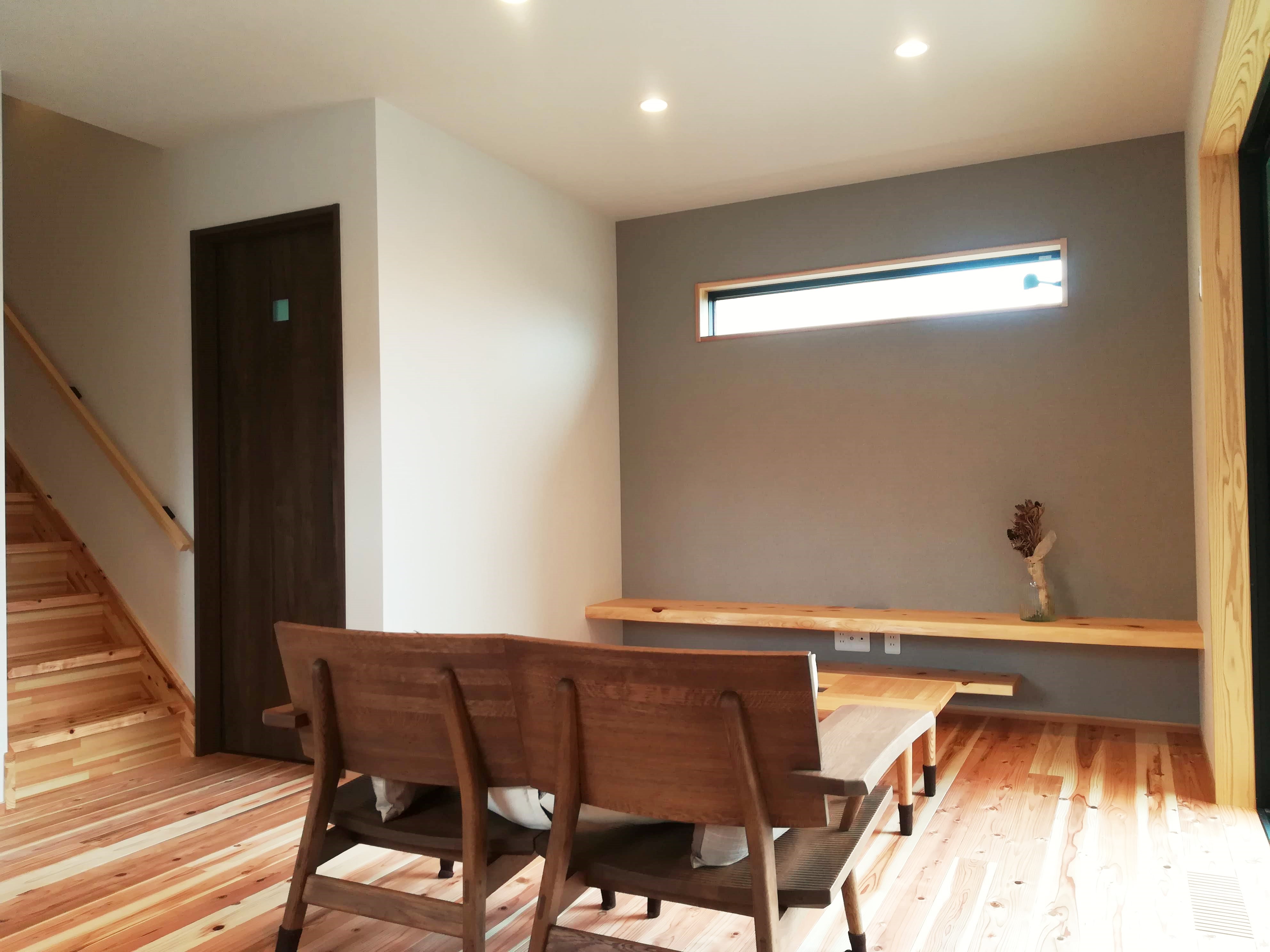 ご主人がこだわった、耳付きの桧の板を使用した書斎コーナーも