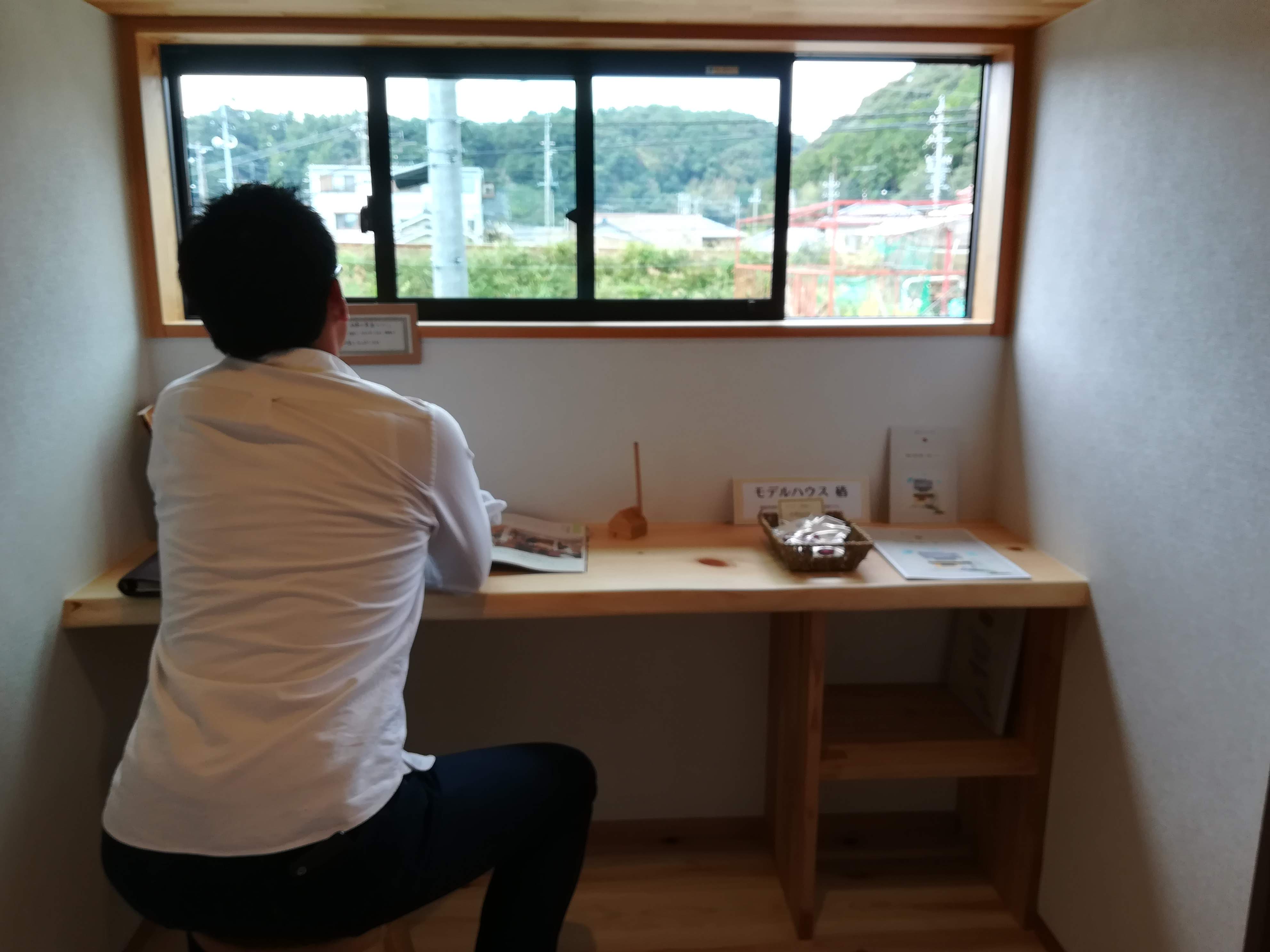 書斎コーナーの窓からの景色も良く、