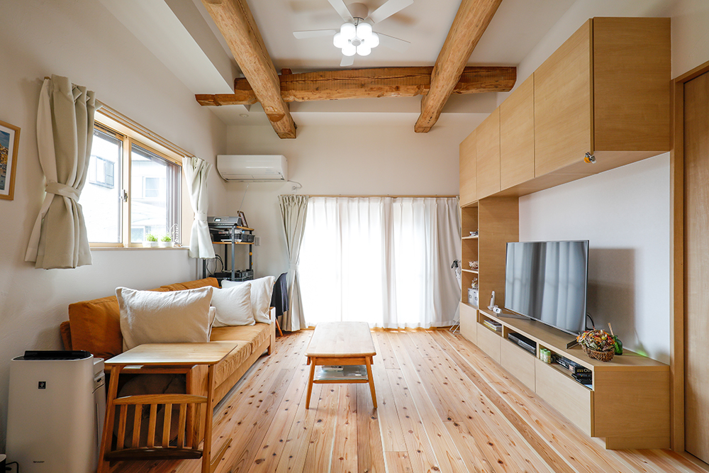 リフォーム後の住まいは、間取りが変わって格段に住みやすくなり、家全体がキレイになりました。また、床には天竜檜、壁には珪藻土を用いているせいか、「室内に入って真っ先に、新しいのにどこか懐かしいような安心感に包まれました」と奥様。
