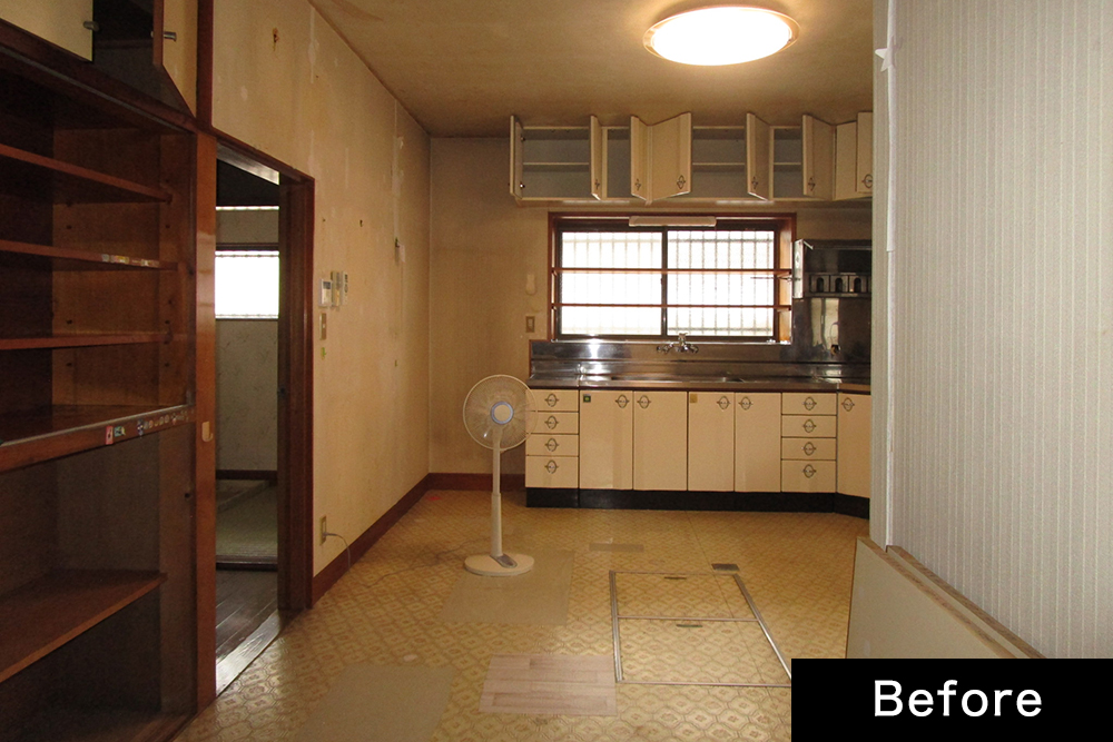 そこで今回のリフォームでは、キッチンと和室の壁を思いきって取り払い、ひとつながりのLDKをつくって、ご夫婦の時間を増やそうと計画しました。