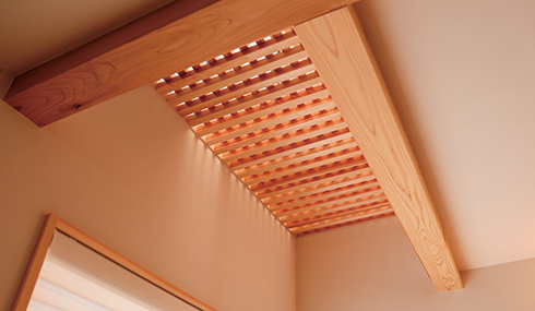 木と自然素材が織りなす空間は、1年を通じて室内を適度な湿度に保ってくれるだけでなく、家中が木の香に包まれて、身も心も癒してくれます。